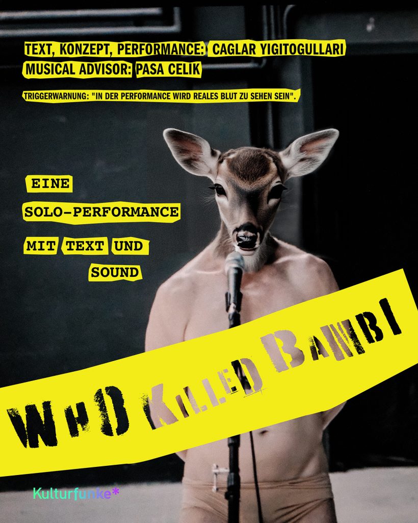 Eine Aufführung des körperlich stark fordernden Stücks „Der Kreis“ wird Çağlar Yiğitoğulları auf Grund von verletzungsbedingten Einschränkungen nicht möglich sein. Gezeigt wird – wie in Leipzig – seine jüngste Arbeit „Who Killed Bambi“.
